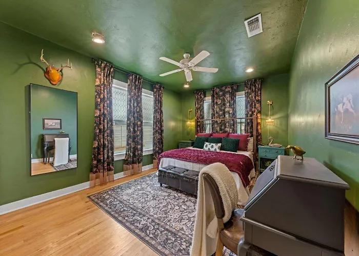 Welcome to the enchanting Hello Bungalow, a serene retreat that perfectly blends comfort and convenience in Fredericksburg. Located just a short 100 km from San Antonio International Airport, this charming sanctuary is an ideal base for exploring the vibrant local culture and picturesque landscapes of Texas Hill Country. Guests can unwind in a unique setting tailored for relaxation, with a refreshing hot tub and a cozy fire pit just a block away from the bustling main street.